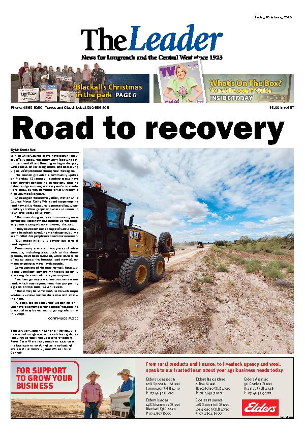 Longreach Leader Today – 16th January 2026 Subscribe or Login to see the rest of the content. Username Password * Remember Me Forgot Password News Time to explore some Mekong magic 18/01/2026 If it is time for that holiday of a lifetime, a retirement trip with a chance to see and visit exotic countries and cultures... Graham grabs first win of 26 18/01/2026 Alex Graham has wasted no time making his mark on the 2026 season, claiming victory in the opening competition at Ilfracombe Golf Club with... Littleproud calls Elon Musk’s X a ’cesspit’ 18/01/2026 Nationals Leader David Littleproud has strongly criticised Elon Musk’s social media platform X for allowing its AI chatbot Grok to generate non-consensual sexually explicit...