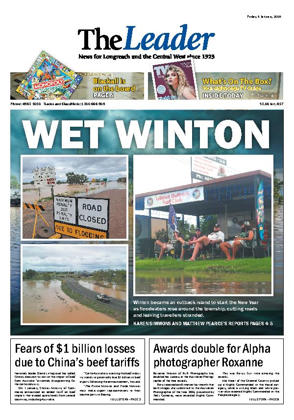 Longreach Leader Today – 9th January 2026 Subscribe or Login to see the rest of the content. Username Password * Remember Me Forgot Password News Results of investigation into elder abuse troubling 10/01/2026 Elder Abuse is continuing to be a scourge on our communities, and thankfully the state government is hearing the voices of Queenslanders and taking... On This Day: National Word Nerd Day 09/01/2026 Grammar geeks, language lovers and word nerds can celebrate with National Word Nerd Day on 9 January. For those who are always correcting someone’s pronunciation... Community Events 09/01/2026 WEEKLY Social Tennis Grab your racquet (or borrow one) and join the Longreach Tennis Club for a hit every Tuesday. Come down for some...