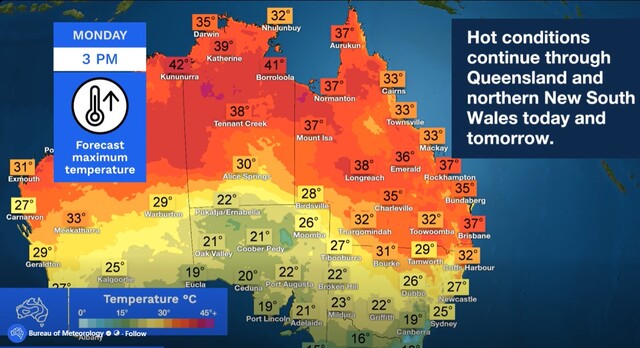 High temperatures will continue for early in the week in the Central West. (Image: BoM)