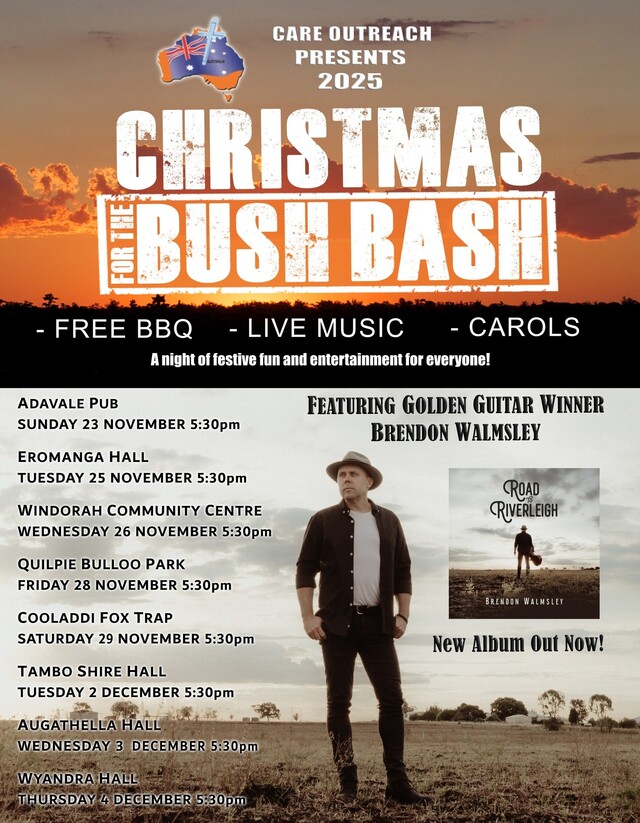 Golden Guitar winning country singer-songwriter Brendon Walmsley has headed west for his annual Christmas For The Bush Bash, taking songs […]